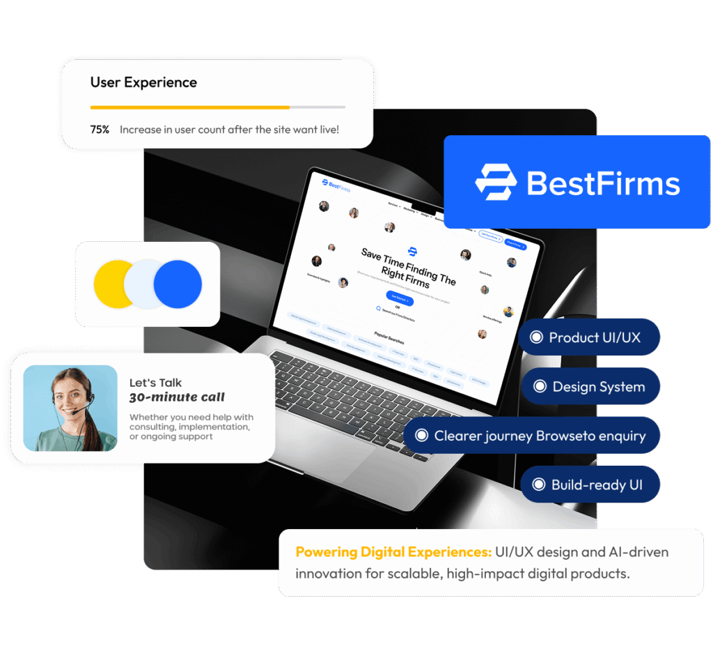 Best Firms is a WEBDIGITA Labs concept exploring how a service directory can feel premium, stay easy to navigate, and convert browsing intent into enquiries. The aim was a scalable UI that can support many categories and location pages without redesign.