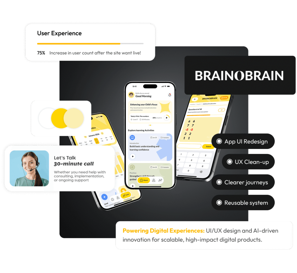 BrainObrain now has a cleaner, more consistent interface that reduces confusion across key learning flows. The redesign improved readability, strengthened visual trust, and delivered a UI kit that makes future iterations faster and lower risk.