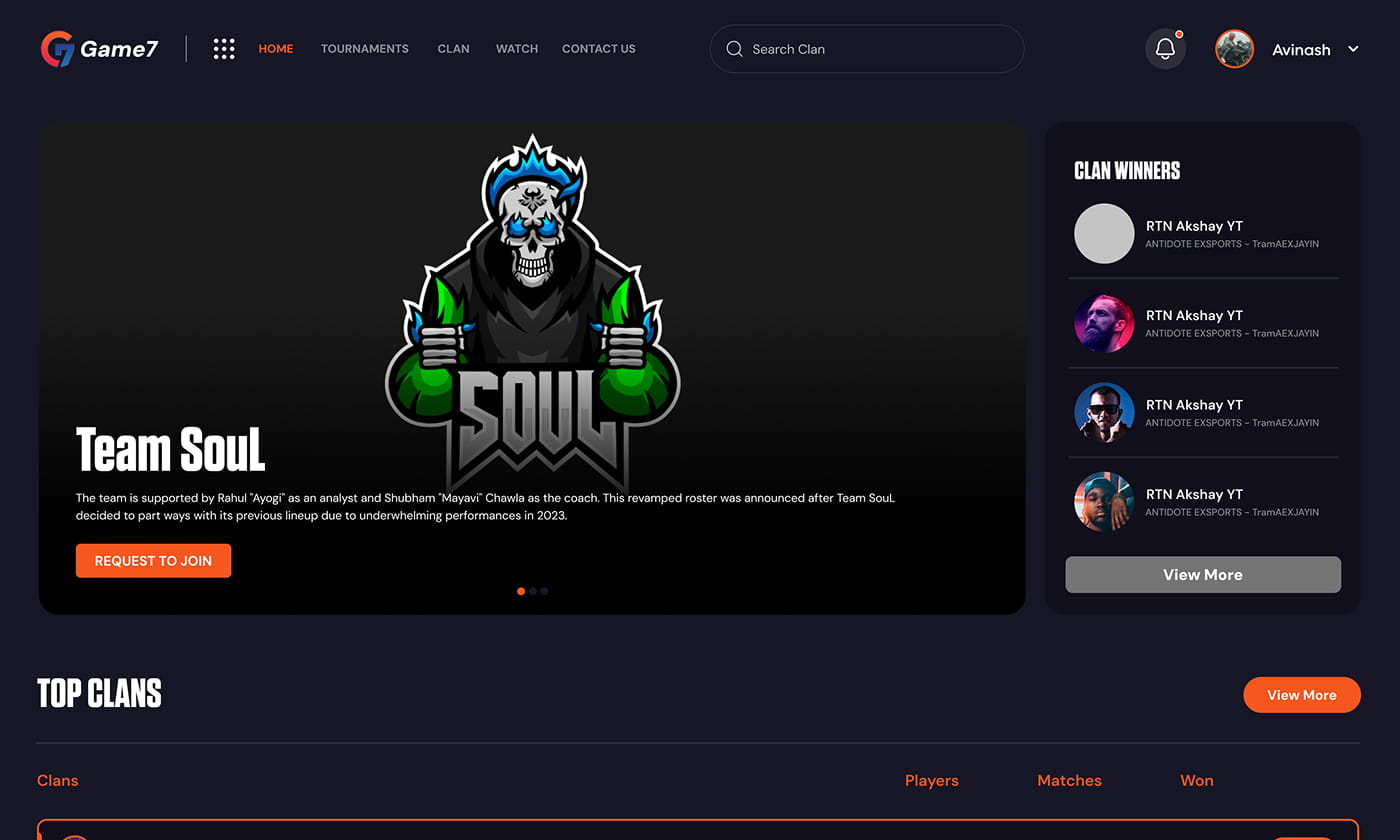 Game7 shipped as a scalable, modular platform with consistent UI patterns across complex screens and an infrastructure setup designed for high-traffic bursts. The system is easier to extend with new tournament formats, clan features and content modules while keeping performance predictable.