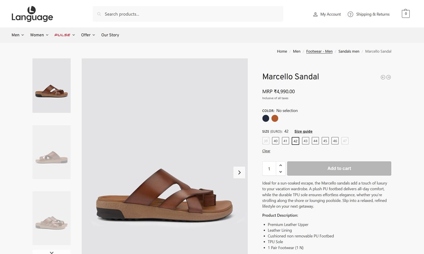 Language Shoes engaged Webdigita to design and build a direct-to-consumer ecommerce platform for the launch of their own footwear brand. With deep manufacturing experience but no existing digital presence, the goal was to establish a credible, premium brand online.