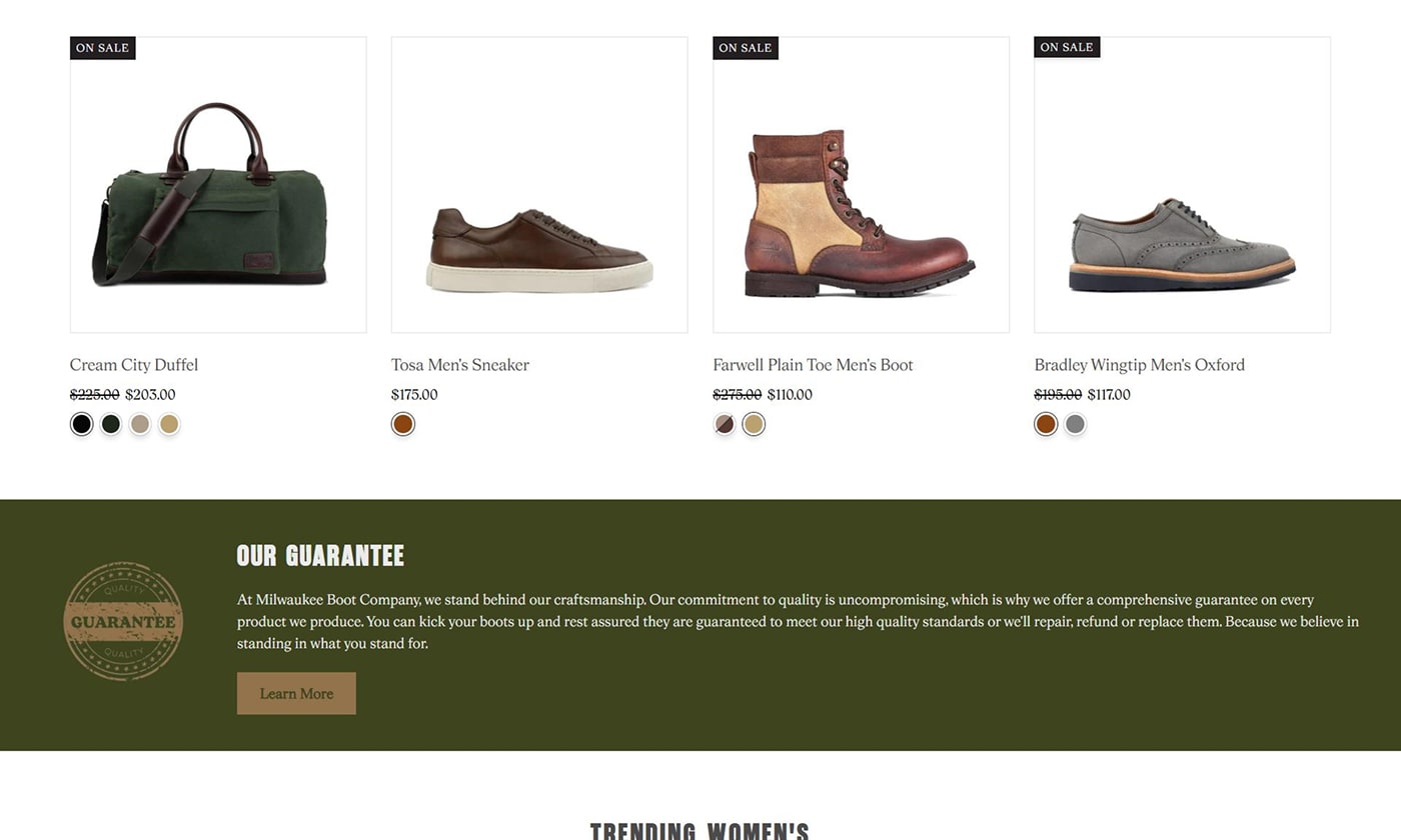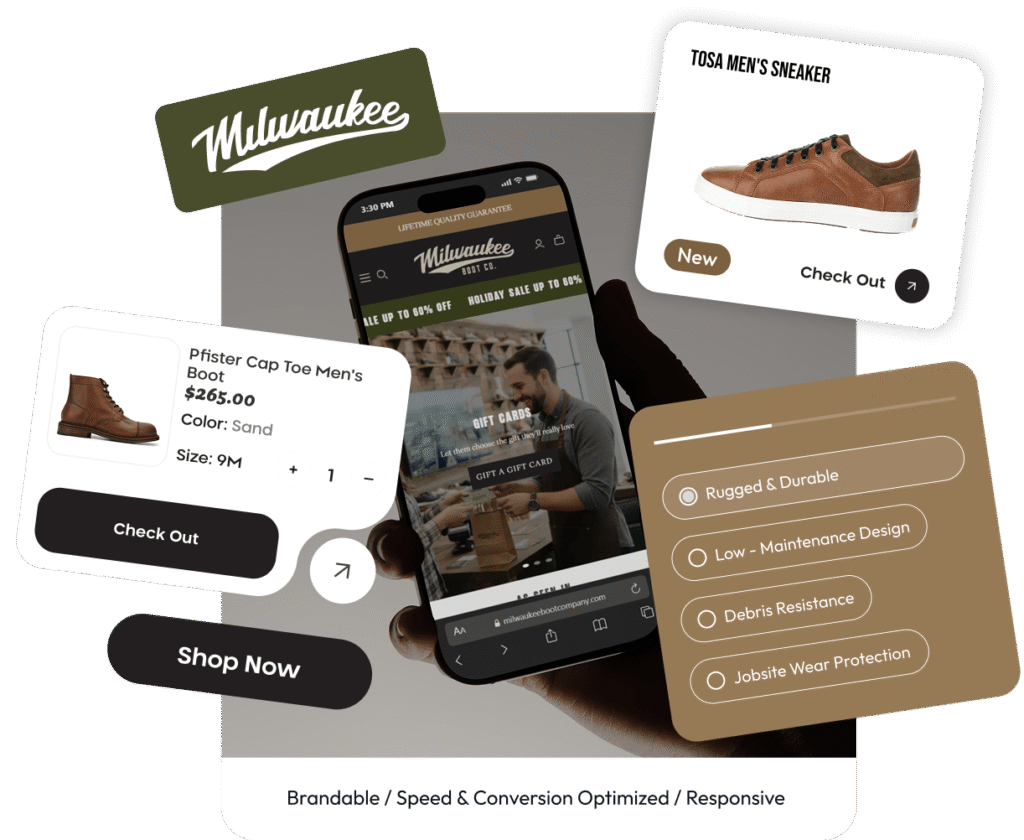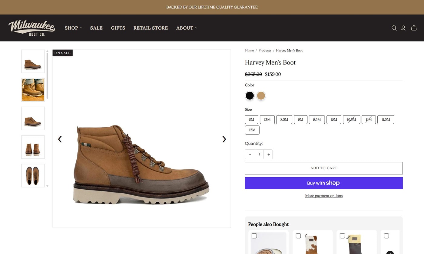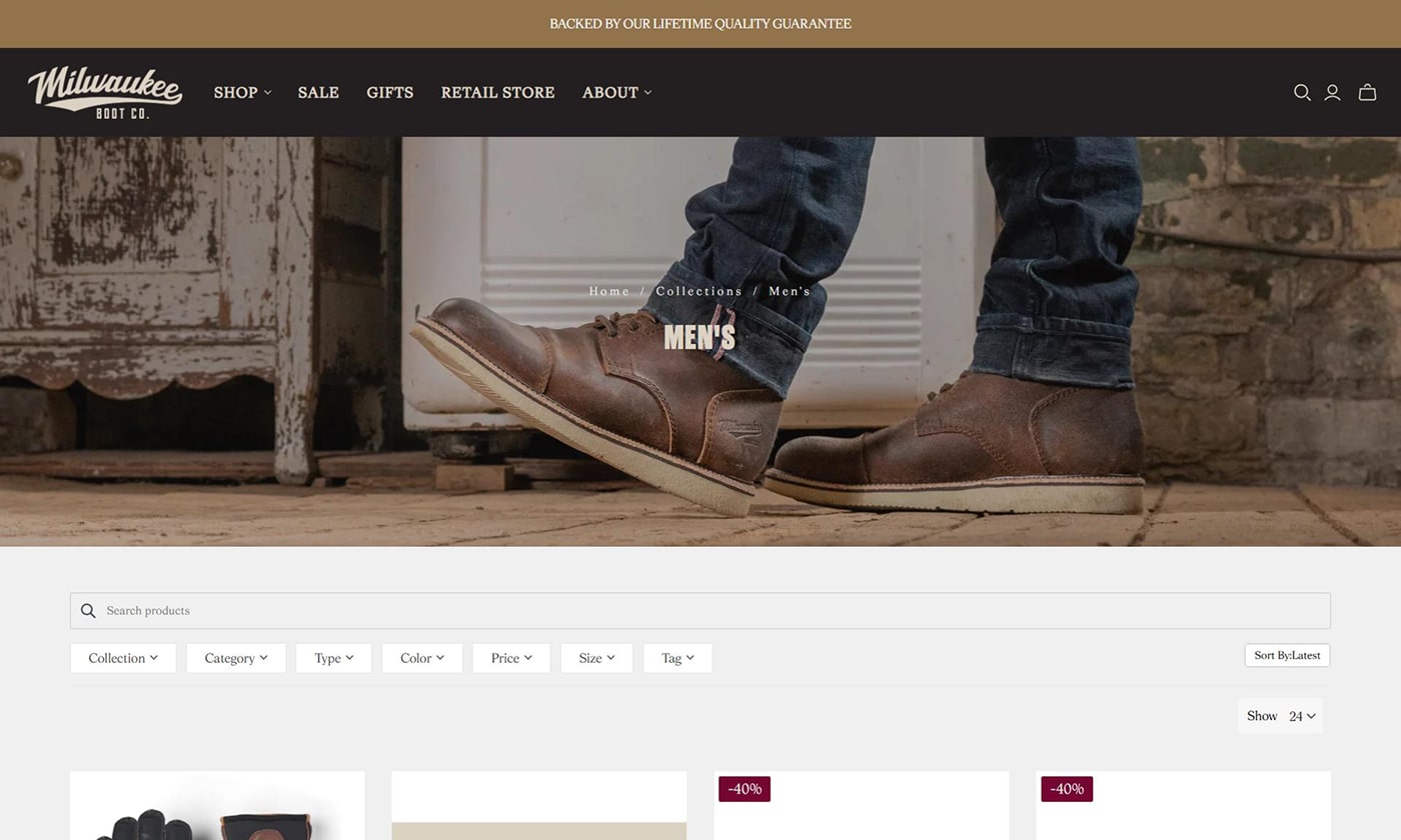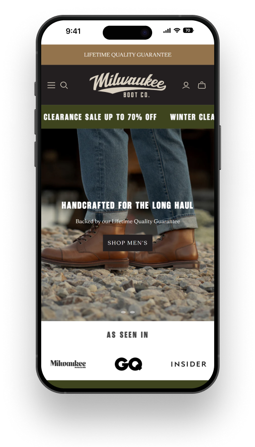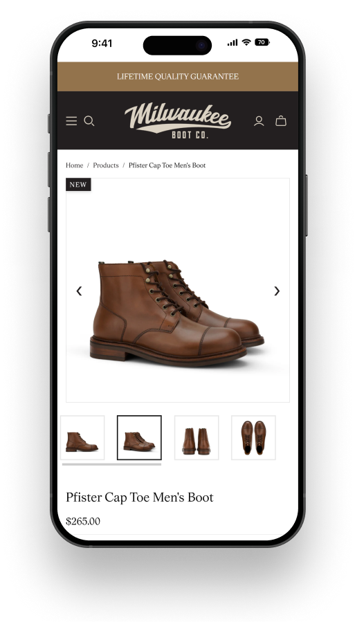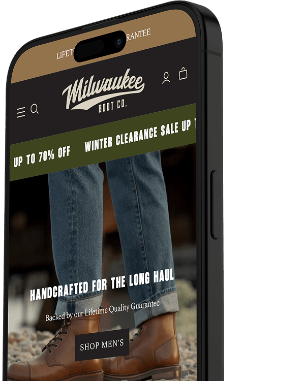Milwaukee Boot Company came to us via a client referral to modernise an outdated ecommerce website. The goal was to raise UI quality and brand alignment, improve user experience, and strengthen performance without changing the existing brand identity.