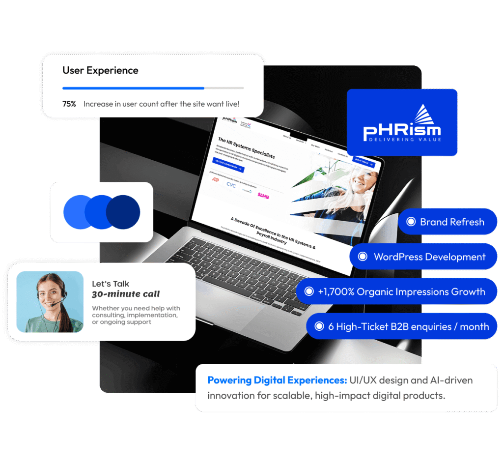 Phrism needed a full brand revamp to sharpen their premium positioning in HR tech & consulting space, and turn the website into a consistent B2B lead source.