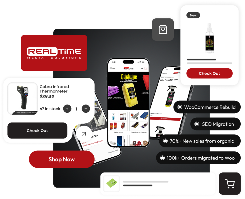 RT Media Solutions needed a modern WooCommerce store that trade customers could navigate quickly, while protecting SEO equity during a migration from a legacy custom site.