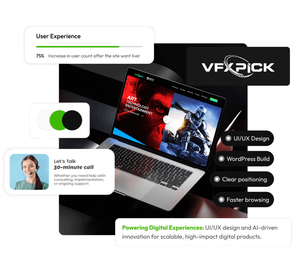VFX Pick went from a logo to a complete studio presence that feels credible to international production teams. The site communicates capabilities clearly, supports media-heavy pages without feeling slow, and gives prospects a straightforward way to start a conversation while the team scales.